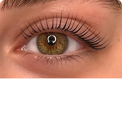 Curvatura e cor dos cílios naturais sem extensões. Levantados, escuros e com efeito máscara por até 8 semanas.